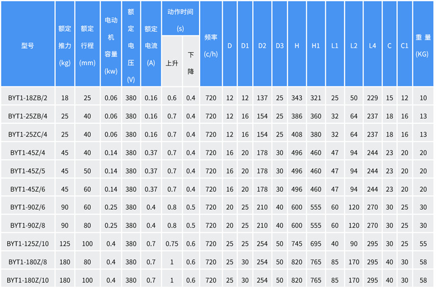 BYT1隔爆型電力液壓推動器適用于夾緊裝置、閥門、閘門、唧筒等的驅動和控制裝置。主要作為電力液壓鼓式制動器的松閘使用,也可通過各種形式的杠桿裝置做各種不同的運動。